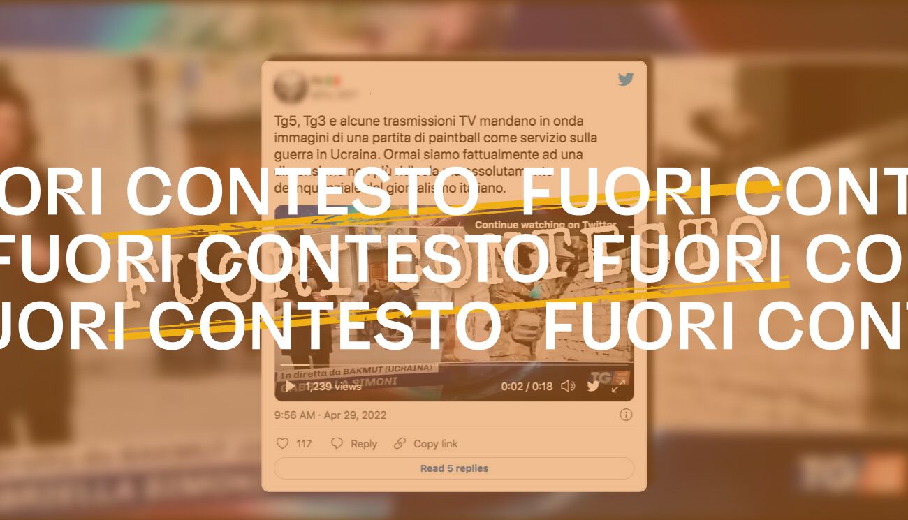 Il video è accompagnato da un commento, scritto dall’autore del tweet, in cui si legge: «Tg5, Tg3 e alcune trasmissioni TV mandano in onda immagini di una partita di paintball come servizio sulla guerra in Ucraina. Ormai siamo fattualmente ad una dimensione non più ridicola ma assolutamente delinquenziale del giornalismo italiano».