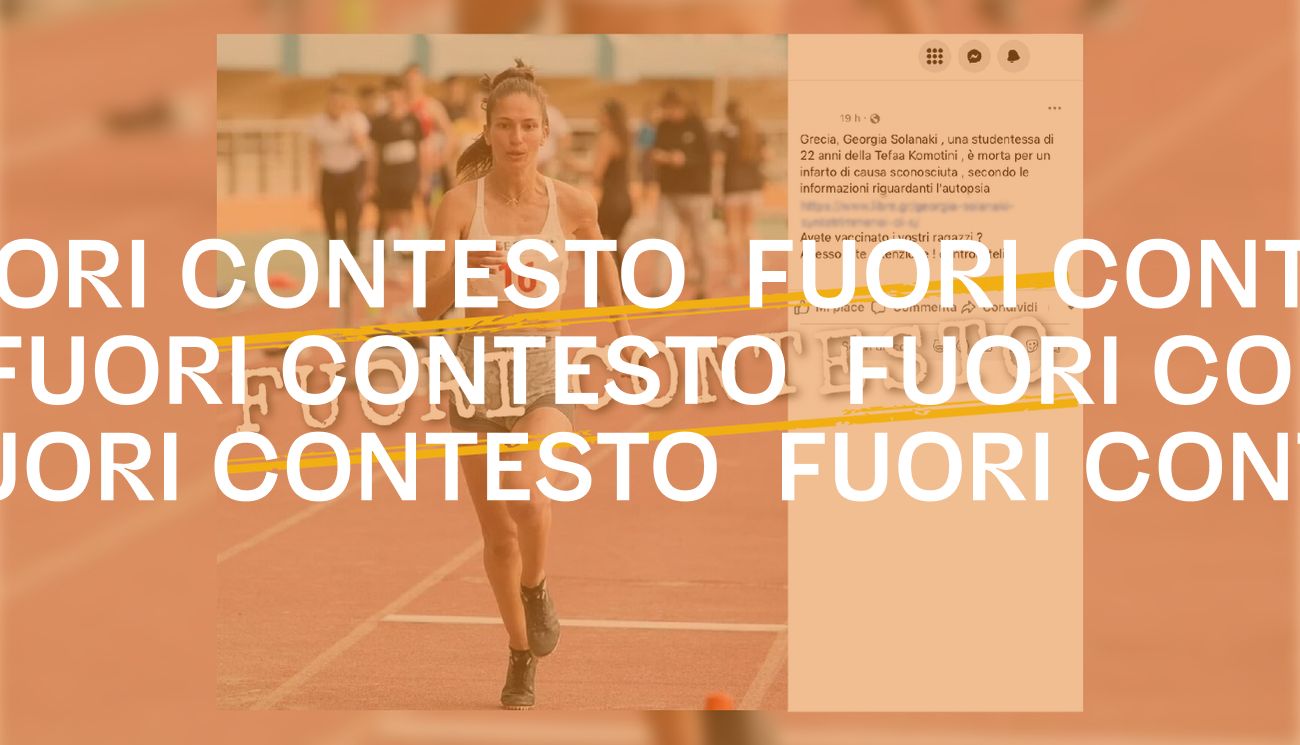 Il 19 giugno 2022 su Facebook è stata pubblicata una foto che mostra una ragazza mentre corre all’interno di una pista di atletica. L’immagine è accompagnata da questo testo, scritto da chi ha pubblicato il post su Facebook: «Grecia, Georgia Solanaki , una studentessa di 22 anni della Tefaa Komotini, è morta per un infarto di causa sconosciuta, secondo le informazioni riguardanti l’autopsia. Avete vaccinato i vostri ragazzi? Adesso fate attenzione! controllateli!».