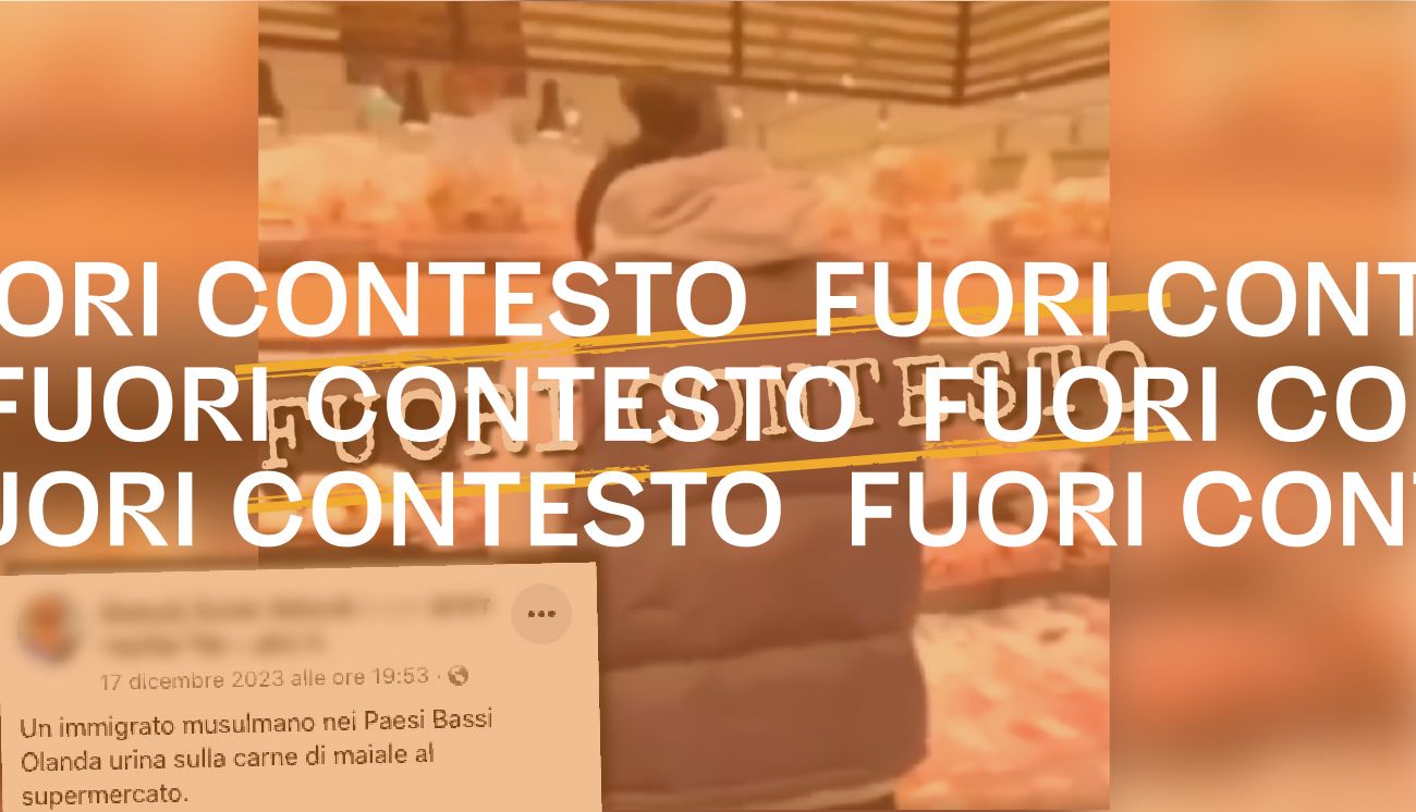 Il 17 dicembre 2023 è stato pubblicato su Facebook un video di un uomo ripreso di spalle che fa il gesto di urinare su un bancone di carne confezionata all’interno di un supermercato. In contemporanea si sente la voce fuori campo di un altro uomo che dice in inglese «noi non mangiamo maiale».