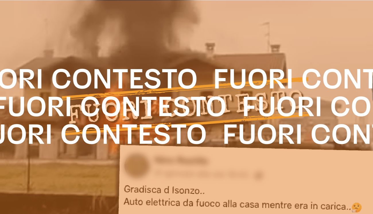 Il 31 gennaio 2024 è stato pubblicato su Facebook il video di un incendio in una villetta a schiera. Il filmato è accompagnato da un testo, scritto dall’autore del post, che recita: «Gradisca d’Isonzo..Auto elettrica da fuoco alla casa mentre era in carica..».