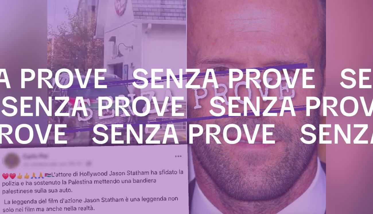 Il 26 ottobre 2023 è stato pubblicato su Facebook un video che mostra un uomo stendere la bandiera della Palestina sul cofano di un’automobile nera, per poi entrare in macchina e partire. Secondo chi ha condiviso il filmato, si tratterebbe dell’«attore di Hollywood Jason Statham». Lo stesso contenuto circola anche su TikTok