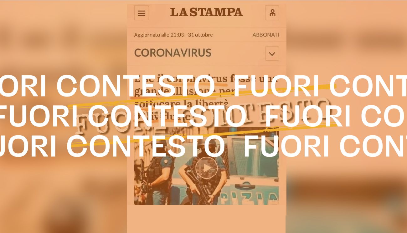 Il 7 novembre 2023 la redazione di Facta.news ha ricevuto una segnalazione via WhatsApp che chiedeva di verificare un post pubblicato tre giorni prima su Facebook. Nel contenuto social in questione compare lo screenshot di un articolo de La Stampa intitolato “E se il coronavirus fosse una grande illusione per soffocare la libertà individuale?” con la foto di due agenti di polizia in assetto antisommossa. Nell’immagine compare anche una data «31 ottobre», senza però alcun riferimento all’anno.