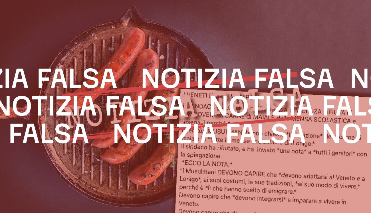 Il 26 ottobre 2022 su Facebook è stato pubblicato un post in cui si legge che il sindaco di Lonigo, comune in provincia di Vicenza, si sarebbe rifiutato di rimuovere la carne di maiale dalle mense scolastiche. Il post riporta anche il testo di una presunta lettera con cui il sindaco avrebbe spiegato la decisione ai genitori musulmani, che avevano chiesto l’abolizione della carne di maiale (proibita dal Corano) da tutte le mense scolastiche della cittadina veneta.