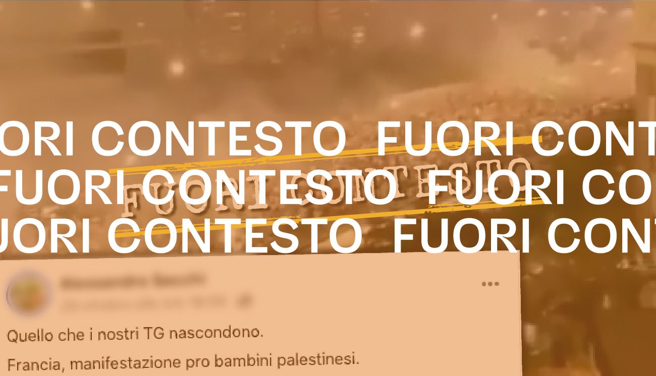 Il 29 ottobre 2023 è stato pubblicato su Facebook il video di una grande folla di persone che marcia di notte lungo una strada di città e spara petardi. Il filmato è accompagnato da un commento, scritto dall’autore del post, che recita: «Quello che i nostri TG nascondono. Francia, manifestazione pro bambini palestinesi».