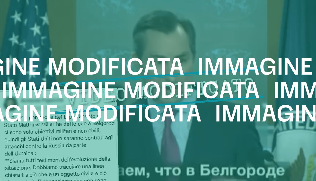 Anche la seconda clip, che contiene la risposta di Miller (con la cravatta rossa), è stata manipolata. La scena proviene da un altro briefing con la stampa, svoltosi il 28 maggio 2024. In questo caso leggendo la trascrizione integrale o ascoltando il filmato originale, il portavoce statunitense non menziona mai la città russa di Belgorod e non pronuncia in nessun momento la frase sugli obiettivi civili e militari in Russia che si può ascoltare nel filmato alterato.