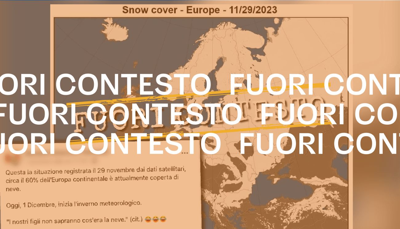 Il 1°dicembre 2023 è stata pubblicata su Facebook l’immagine di una mappa dell’Europa dove alcuni Paesi sono colorati di bianco e altri di grigio scuro. La cartina è intitolata «snow cover-Europe-11/29/2023». Nel post è presente anche un commento: «Questa la situazione registrata il 29 novembre dai dati satellitari, circa il 60% dell’Europa continentale è attualmente coperta di neve». «”I nostri figli non sapranno cos’era la neve” (cit.)», si legge ancora.