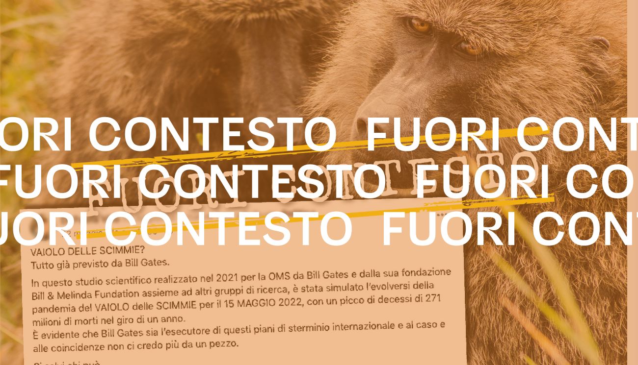 Il 22 maggio 2022 su Facebook è stato pubblicato un post in cui si legge: «VAIOLO DELLE SCIMMIE? Tutto già previsto da Bill Gates. In questo studio scientifico realizzato nel 2021 per la OMS da Bill Gates e dalla sua fondazione Bill & Melinda Foundation assieme ad altri gruppi di ricerca, è stata simulato l’evolversi della pandemia del VAIOLO delle SCIMMIE per il 15 MAGGIO 2022, con un picco di decessi di 271 milioni di morti nel giro di un anno. È evidente che Bill Gates sia l’esecutore di questi piani di sterminio internazionale e al caso e alle coincidenze non ci credo più da un pezzo. Si salvi chi può».