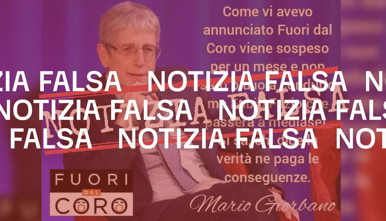 Il 1 novembre 2021 è stato pubblicato un post su Facebook contenente una presunta citazione del giornalista e conduttore televisivo Mario Giordano che recita: «Come vi avevo annunciato Fuori dal Coro viene sospeso per un mese e non sarò io a condurlo ma Fabio Fazio che passerà a mediaset. Si sa, chi dice la verità ne paga le conseguenze».