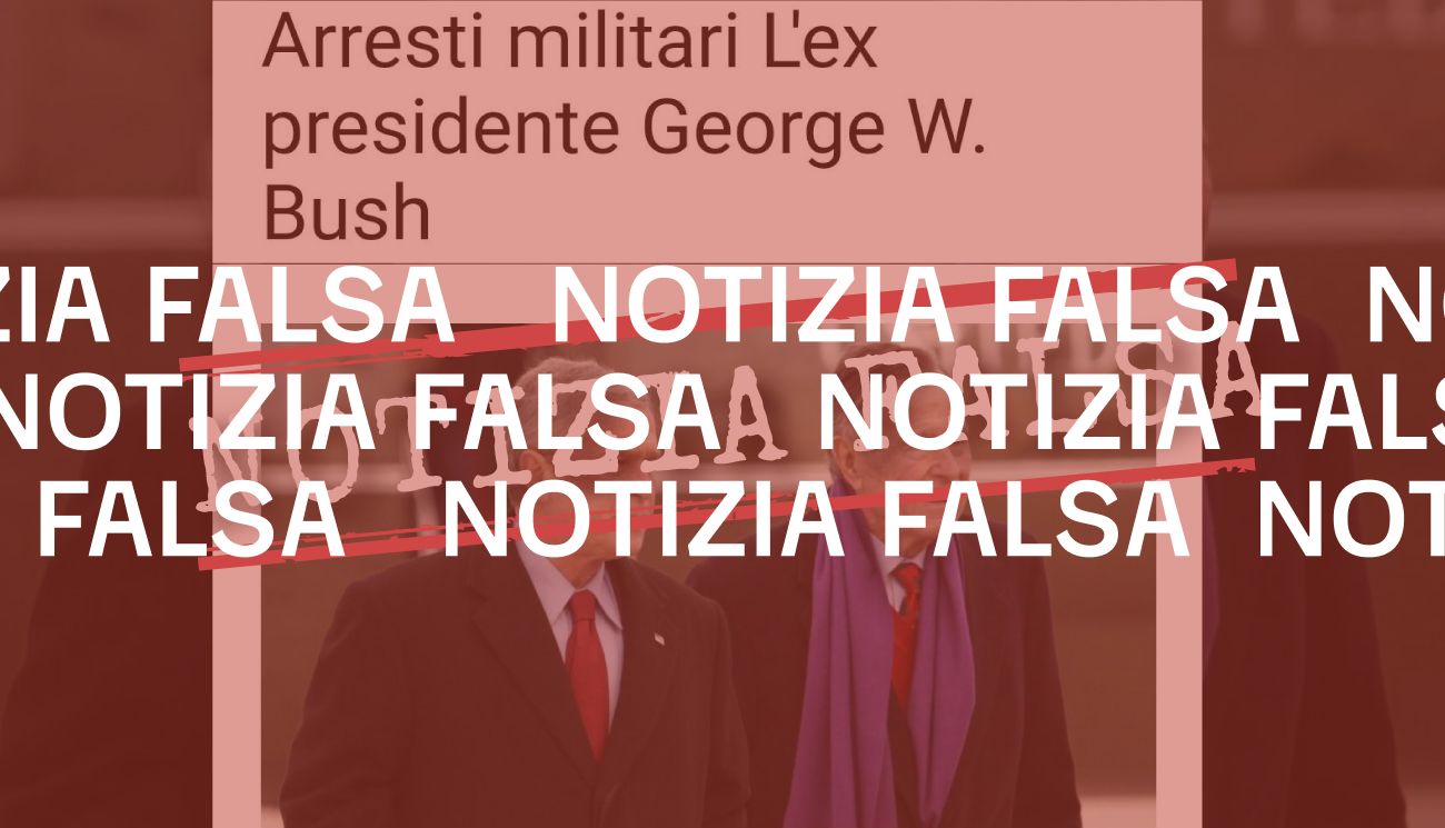 Il 16 novembre 2021 è stato pubblicato un post su Facebook contenente il titolo di un articolo in cui si legge “Arresti militari L’ex presidente George W Bush” e un testo, scritto dall’autore del post, che recita: «Bush, è stato accusato di tradimento ed è tenuto a rispondere della morte di migliaia di soldati in Iraq e Afghanistan e per il suo ruolo nell’ideare l’11 settembre, oltre ad altri crimini».