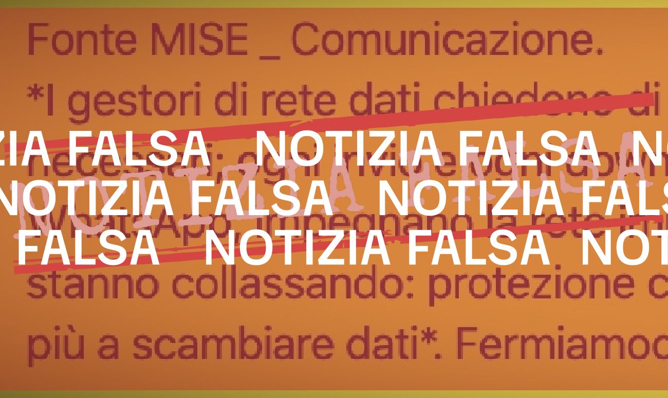 Il 26 marzo su Facebook è stato pubblicato un post in cui si legge che il Ministero dello Sviluppo Economico (Mise) avrebbe diramato per via dell’emergenza Covid-19 in Italia questo comunicato: «I gestori di rete dati chiedono di non diffondere video se non strettamente necessari; ogni invio e ogni download attraverso i social, compreso WhatsApp, impegnano la rete impedendo il regolare funzionamento. Le reti stanno collassando: protezione civile, ospedali, scuole e aziende non riescono più a scambiare dati».