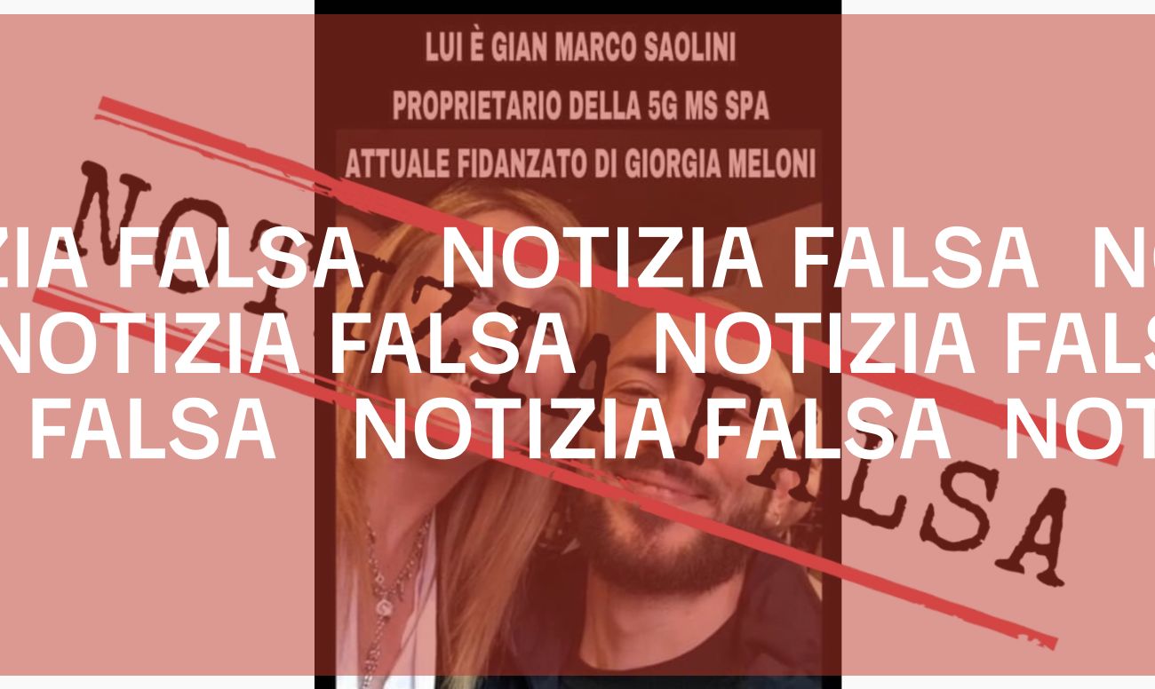 Stando all’immagine, il partner di Meloni – si legge – si chiamerebbe «Gian Marco Saolini» e sarebbe «proprietario della 5G MS SPA». Saolini starebbe inoltre sfruttando l’appoggio politico della fidanzata per installare «antenne per il 5G In tutta Italia senza controlli».
