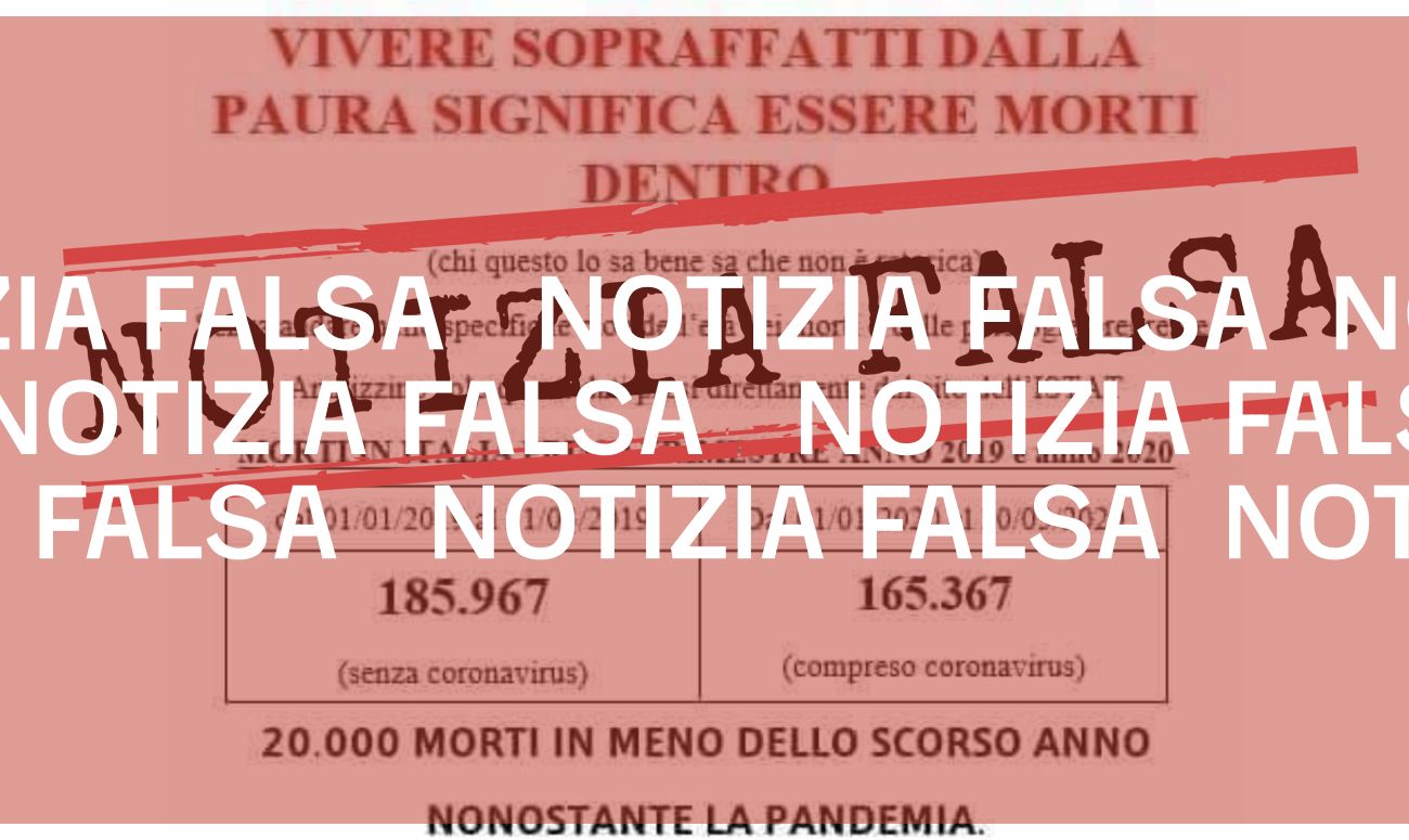 «Vivere sopraffatti dalla paura significa essere morti dentro» si legge nel testo dell’immagine, che precede una tabella in cui vengono snocciolati i presunti dati sulla mortalità in Italia: 165.367 sarebbero i morti nel primo trimestre del 2020, a fronte dei 185.967 dello stesso periodo, ma nel 2019.
