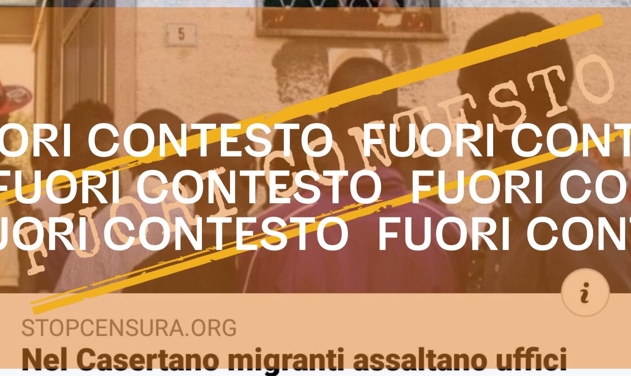 Il 9 aprile la redazione di Facta ha ricevuto via WhatsApp la segnalazione di un presunto assalto alle poste da parte di immigrati nel Casertano. La segnalazione ci è stata inviata facendo riferimento ad un articolo pubblicato dal sito StopCensura.org con il titolo: «Nel Casertano migranti assaltano uffici postali per il bonus da 600 euro».