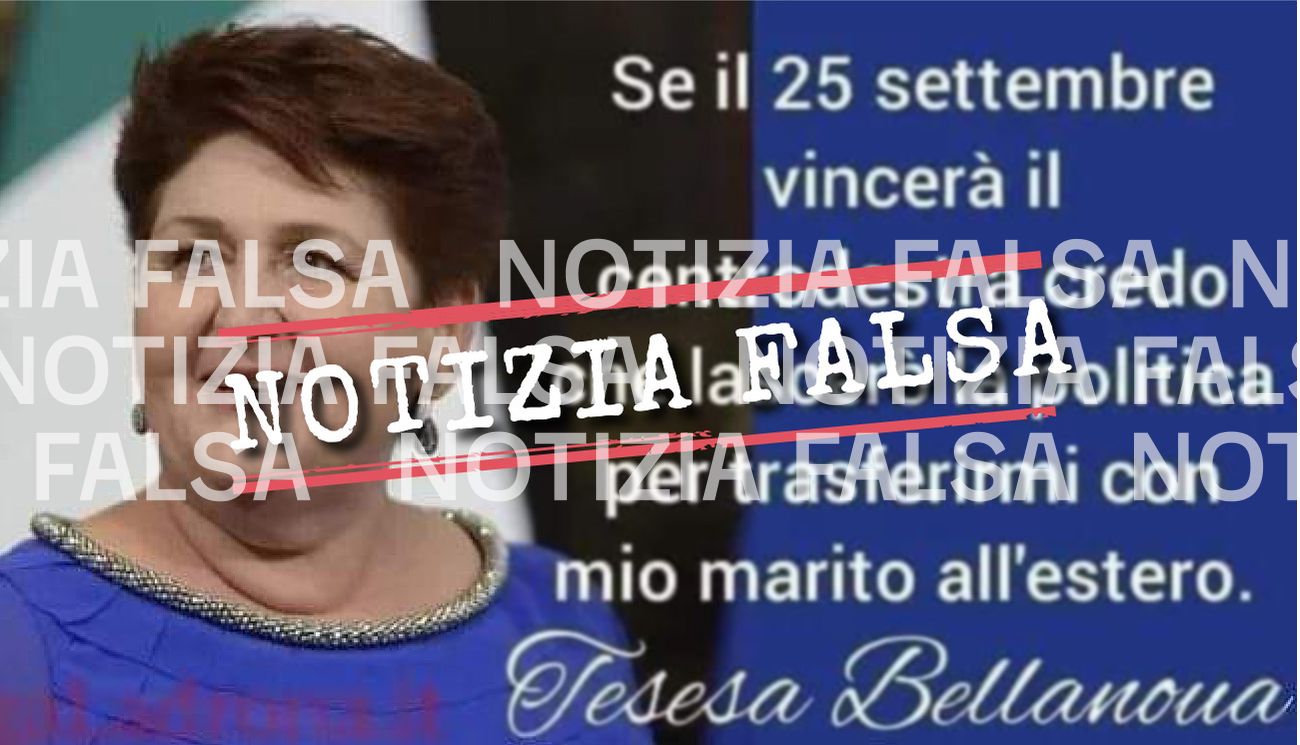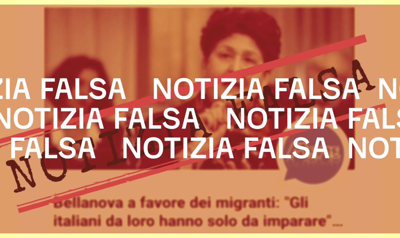 Il 14 agosto su Facebook è stata pubblicata un’immagine che mostra una foto della ministra delle Politiche Agricole Alimentari e Forestali Teresa Bellanova e da una sua presunta dichiarazione riportata dal titolo di un articolo: «Bellanova a favore dei migranti: “Gli italiani da loro hanno solo da imparare”».