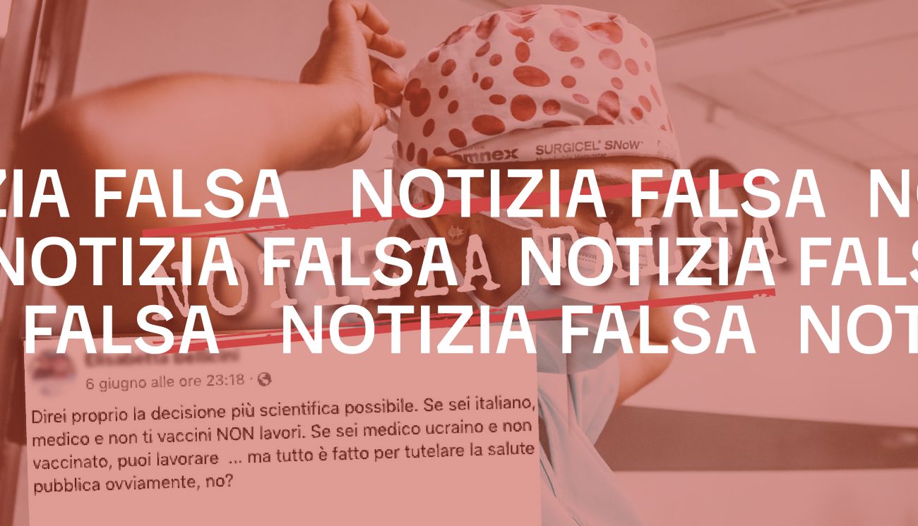 L’8 giugno 2022 la redazione di Facta ha ricevuto una segnalazione che chiedeva di verificare le informazioni riportate in un post pubblicato il 6 giugno su Facebook, contenente lo screenshot di un documento della Regione Lombardia intitolato “Avviso pubblico per il conferimento di incarichi a sanitari cittadini ucraini” e il commento: «Direi proprio la decisione più scientifica possibile. Se sei italiano, medico e non ti vaccini NON lavori. Se sei medico ucraino e non vaccinato, puoi lavorare … ma tutto è fatto per tutelare la salute pubblica ovviamente, no?».