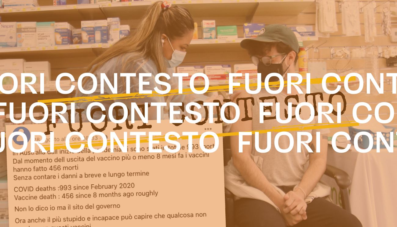 Il 28 agosto 2021 su Facebook è stato pubblicato un post in cui si legge: «In Australia dall’inizio della pandemia ci sono stati in totale 993 morti. Dal momento dell’uscita del vaccino più o meno 8 mesi fa i vaccini hanno fatto 456 morti». Questi dati arriverebbero «dal sito del governo».