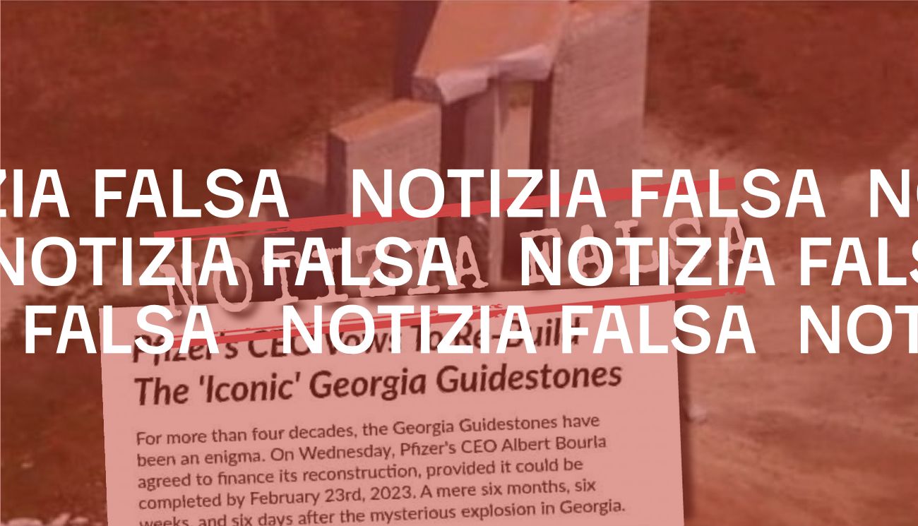 L’11 luglio 2022 su Facebook è stato pubblicato lo screenshot di un presunto articolo del New York Times intitolato “Pfizer’s CEO Vows To Re-Build The ‘Iconic’ Georgia Guidestones” (in italiano, “Il Ceo di Pfizer giura di ricostruire le iconiche Georgia Guidestones”).