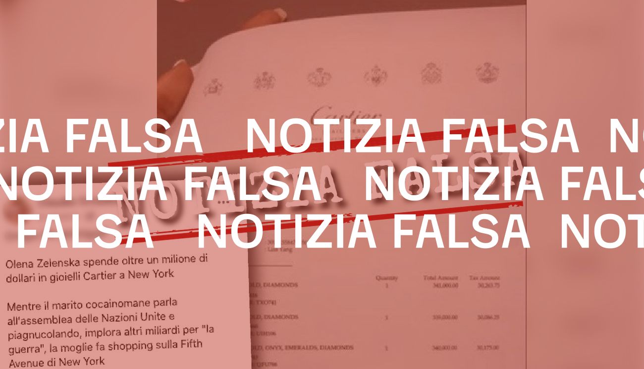 Il 6 ottobre 2023 è stata pubblicata su Facebook la foto di un presunta fattura, datata 22 settembre 2023, che dimostrerebbe che Olena Zelenska, scrittrice e moglie del presidente ucraino Volodymyr Zelensky, avrebbe acquistato in una gioielleria di Cartier a New York merce per un valore di oltre 1 milione di dollari.