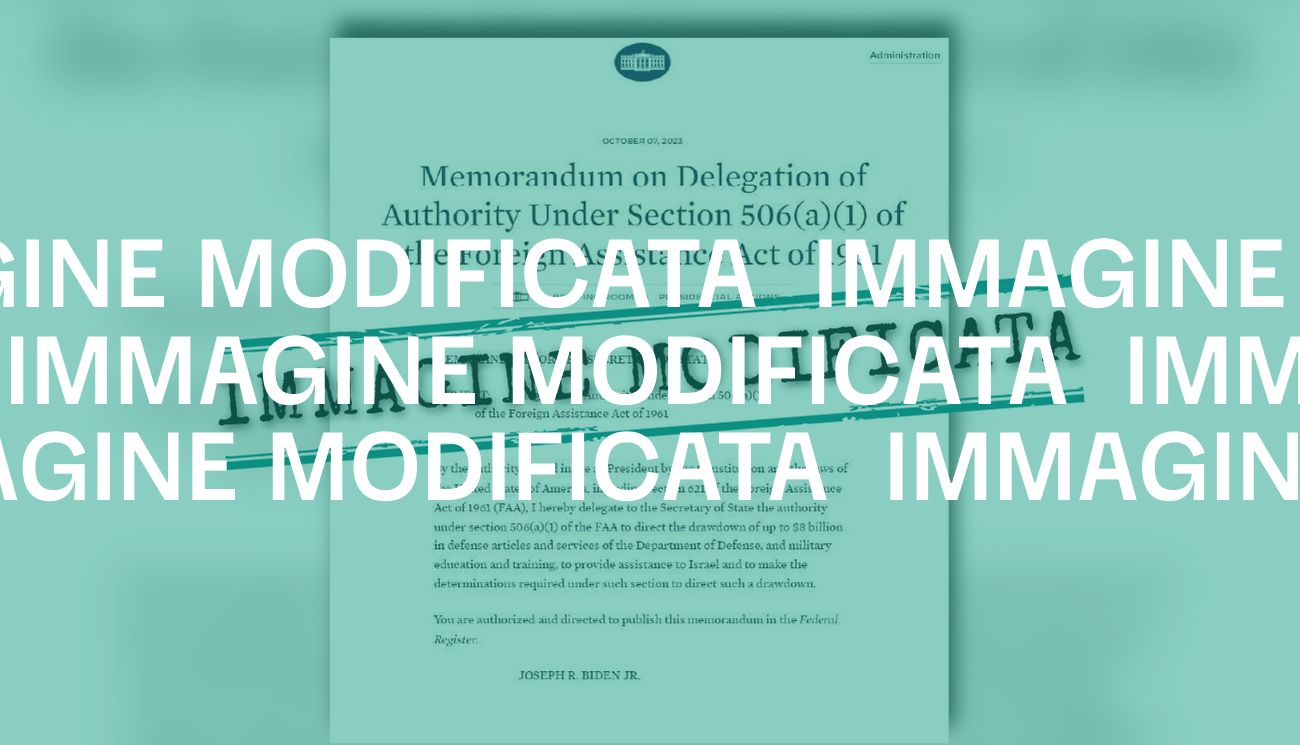 Il 7 ottobre 2023 è stata pubblicata su Facebook l’immagine di un presunto documento datato 7 ottobre 2023 e firmato dal presidente statunitense Joe Biden. Nel testo si legge che gli Stati Uniti d’America, in base alla legge del Foreign Assistance Act del 1961, garantirebbero aiuti militari a Israele per un valore di 8 miliardi di dollari. La foto è accompagnata da un commento scritto dall’autore del post che recita: «Biden ha approvato con urgenza 8 miliardi di dollari in aiuti militari e per la difesa a Israele».