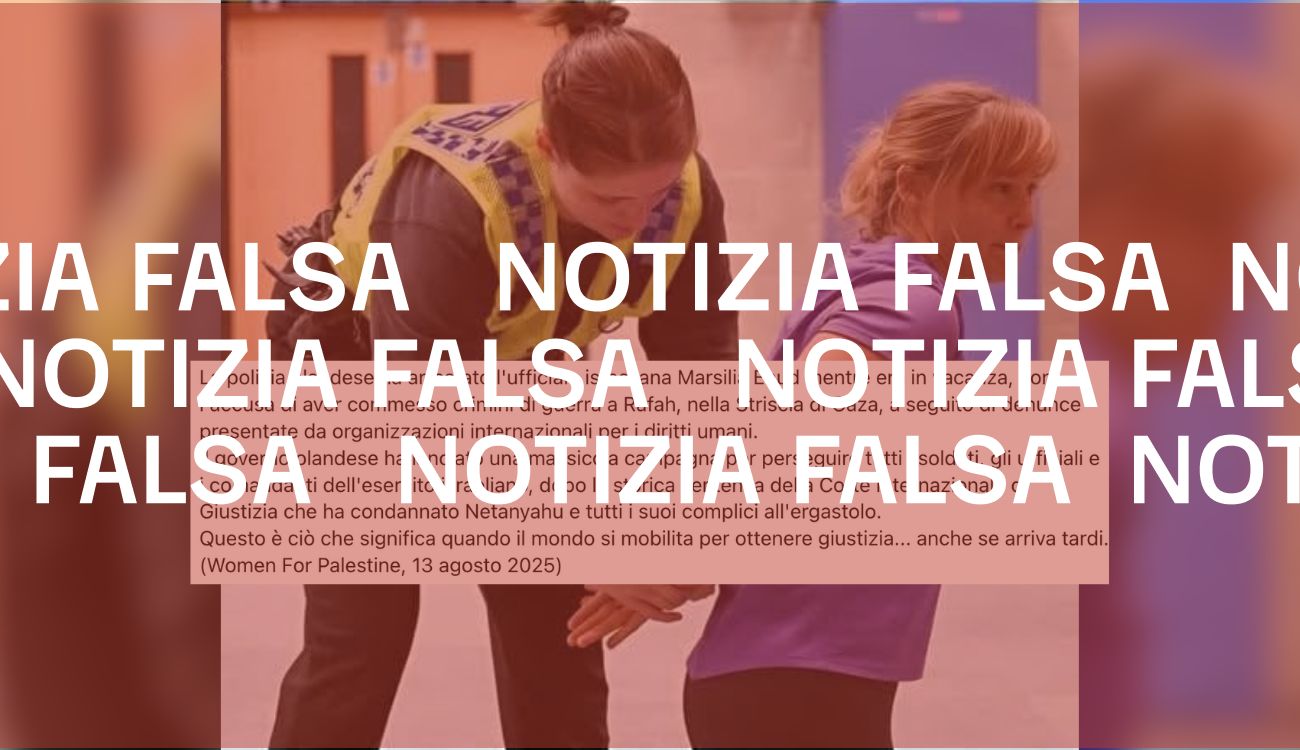 Il 14 agosto 2025 è stato pubblicato su Facebook un post in cui si legge che la «polizia olandese» avrebbe «arrestato l’ufficiale israeliana Marsilia Ehud mentre era in vacanza, con l’accusa di aver commesso crimini di guerra a Rafah, nella Striscia di Gaza, a seguito di denunce presentate da organizzazioni internazionali per i diritti umani». Nel post è presente anche la foto di un’agente di polizia che ammanetta una donna inginocchiata. Lo stesso contenuto è stato diffuso anche su X.