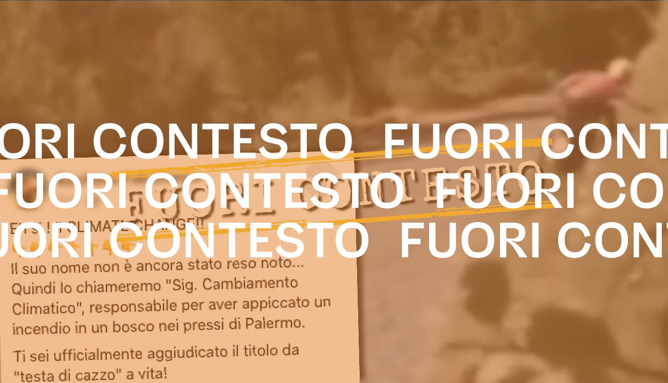 Il 26 luglio 2023 è stato pubblicato su Facebook un video con il logo dell’arma dei carabinieri  che mostra un uomo in motorino fermarsi lungo una strada di campagna, dare fuoco all’erba, e ripartire. Il filmato è accompagnato da un commento, scritto dall’autore che ha pubblicato il post su Facebook, che recita: «Eh si ! Il CLIMATE CHANGE!! Il suo nome non è ancora stato reso noto… Quindi lo chiameremo “Sig. Cambiamento Climatico”, responsabile per aver appiccato un incendio in un bosco nei pressi di Palermo». Lo stesso contenuto è stato pubblicato anche su TikTok.