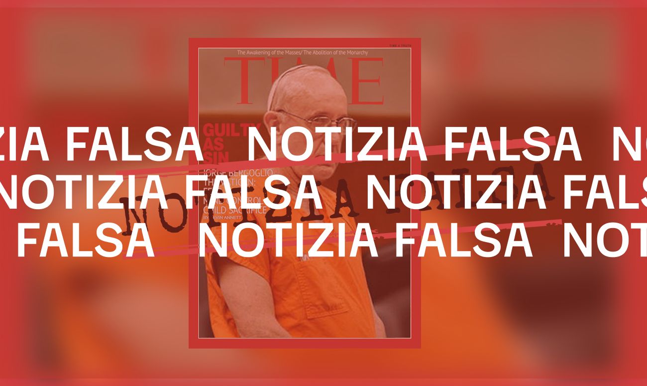 Il 6 luglio 2021 la redazione di Facta ha ricevuto una segnalazione via WhatsApp che chiedeva di verificare l’autenticità di una copertina del settimanale americano Time intitolata “Colpevole come il peccato” che ritrarrebbe Papa Francesco con una tuta arancione (l’uniforme delle prigioni americane). L’immagine è accompagnata da un testo che recita «È morto esecutato a Guantanamo il 24 marzo 2020! Difficile eliminare i mostri dalla testa..Ma è morto!! E con lui si chiuse il 9° cerchio».