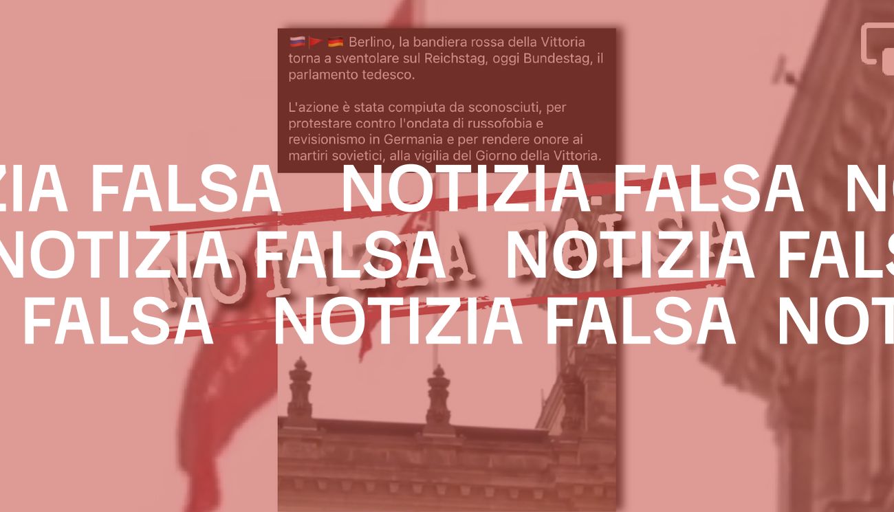 Non esiste tuttavia nessun riscontro che documenti che la scena mostrata nel video si sia verificata realmente. Contattato da diversi siti di fact-checking tedeschi, un portavoce del Parlamento tedesco ha smentito la notizia, affermando che l’8 maggio la bandiera dell’ex Unione sovietica non è mai stata issata sul tetto del Parlamento tedesco. Lo stesso giorno i colleghi tedeschi di Correctiv si sono recati sul posto e non hanno visto sventolare alcun vessillo simile a quello del video oggetto di analisi. Anche altri giornalisti tedeschi presenti l’8 maggio davanti al palazzo del Reichstag non hanno riscontrato la presenza di una simile bandiera.