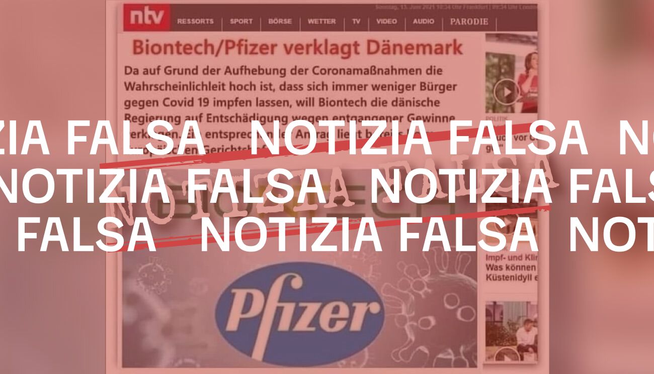 Il 4 febbraio 2022 su Facebook è stato pubblicato un post in cui si sostiene che la casa farmaceutica statunitense Pfizer e l’azienda tedesca di biotecnologia BioNTech, produttrici di uno dei vaccini anti Covid-19, avrebbero citato «lo Stato della Danimarca per mancati GUADAGNI PERCHÉ COME SAPETE LA DANIMARCA HA SOSPESO» la campagna vaccinale. Come prova viene allegata un’immagine che mostra lo screenshot di un articolo pubblicato sul sito del canale in lingua tedesca N-tv che riporta la presunta notizia.