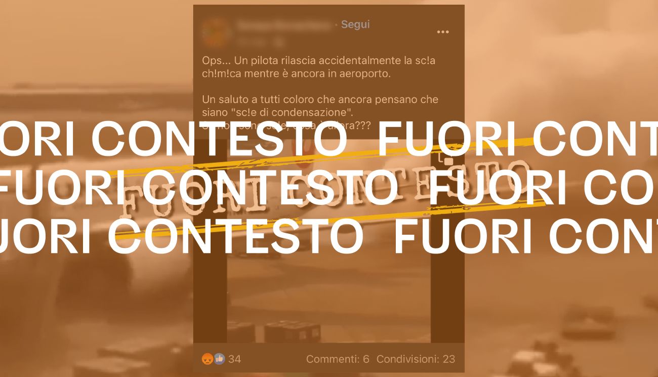 Il 14 marzo 2023 su Facebook è stato pubblicato un video che mostra un aereo, fermo in un aeroporto, da cui fuoriesce denso fumo bianco. Il filmato è accompagnato da un commento, scritto da chi ha pubblicato il post su Facebook, in cui si sostiene che la scena mostrerebbe un pilota rilasciare in maniera accidentale delle cosiddette scie chimiche.