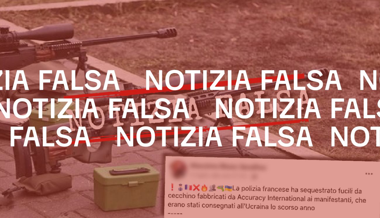 Precisiamo inoltre che la foto dei fucili è stata pubblicata nel 2012 su Vitaly V. Kuzmin – Military blog, blog che diffonde materiale fotografico su eventi militari, di polizia e di sicurezza russi. Stando alla didascalia della foto si tratta di due fucili di precisione Arctic Warfare prodotti da Accuracy International, azienda britannica produttrice di armi da fuoco. La foto non ha quindi alcun legame con l’invasione russa dell’Ucraina.