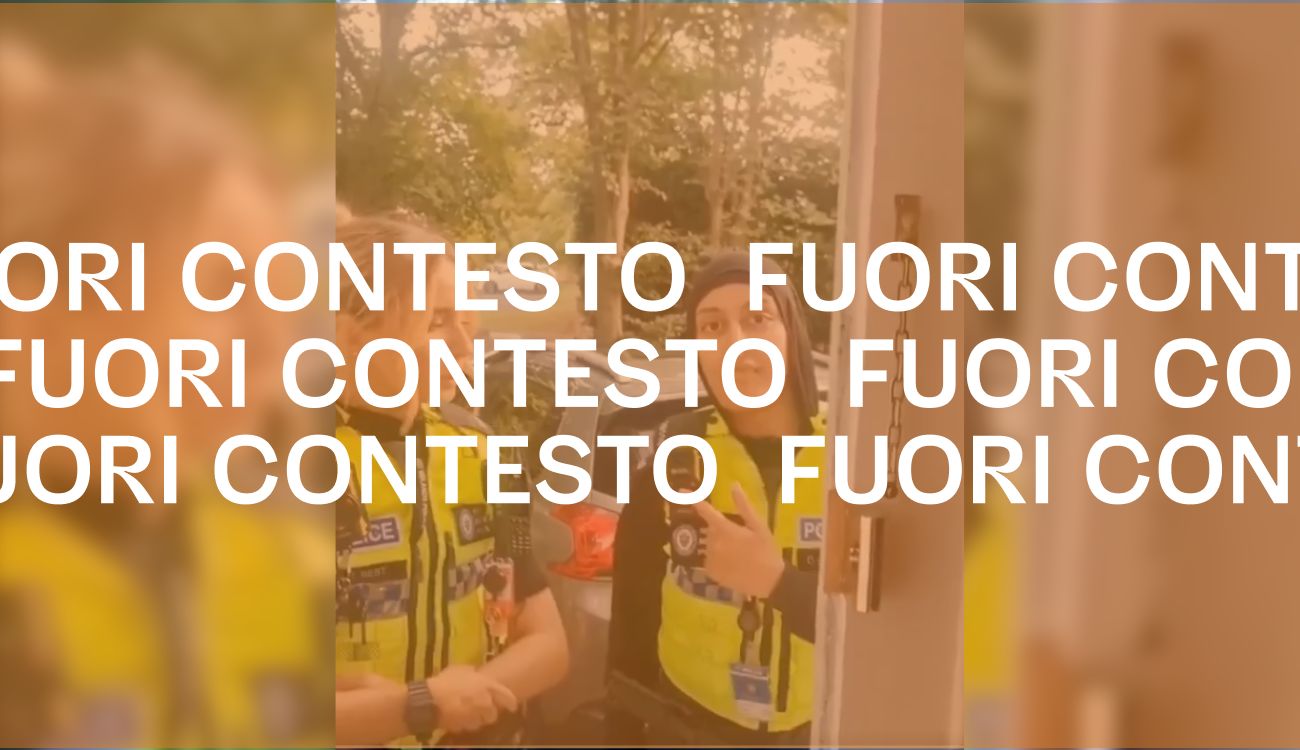 Il 21 settembre 2025 è stato condiviso un video su X di due agenti della polizia che, sull’uscio di una casa, spiegano (in inglese) a una donna (mai inquadrata, ma che sta registrando la scena) di dover sequestrare il telefono della figlia. Sulla didascalia del post si legge che la polizia britannica avrebbe «chiesto la confisca del telefono di una ragazzina a causa di un post che la ragazza avrebbe visualizzato online mesi fa».