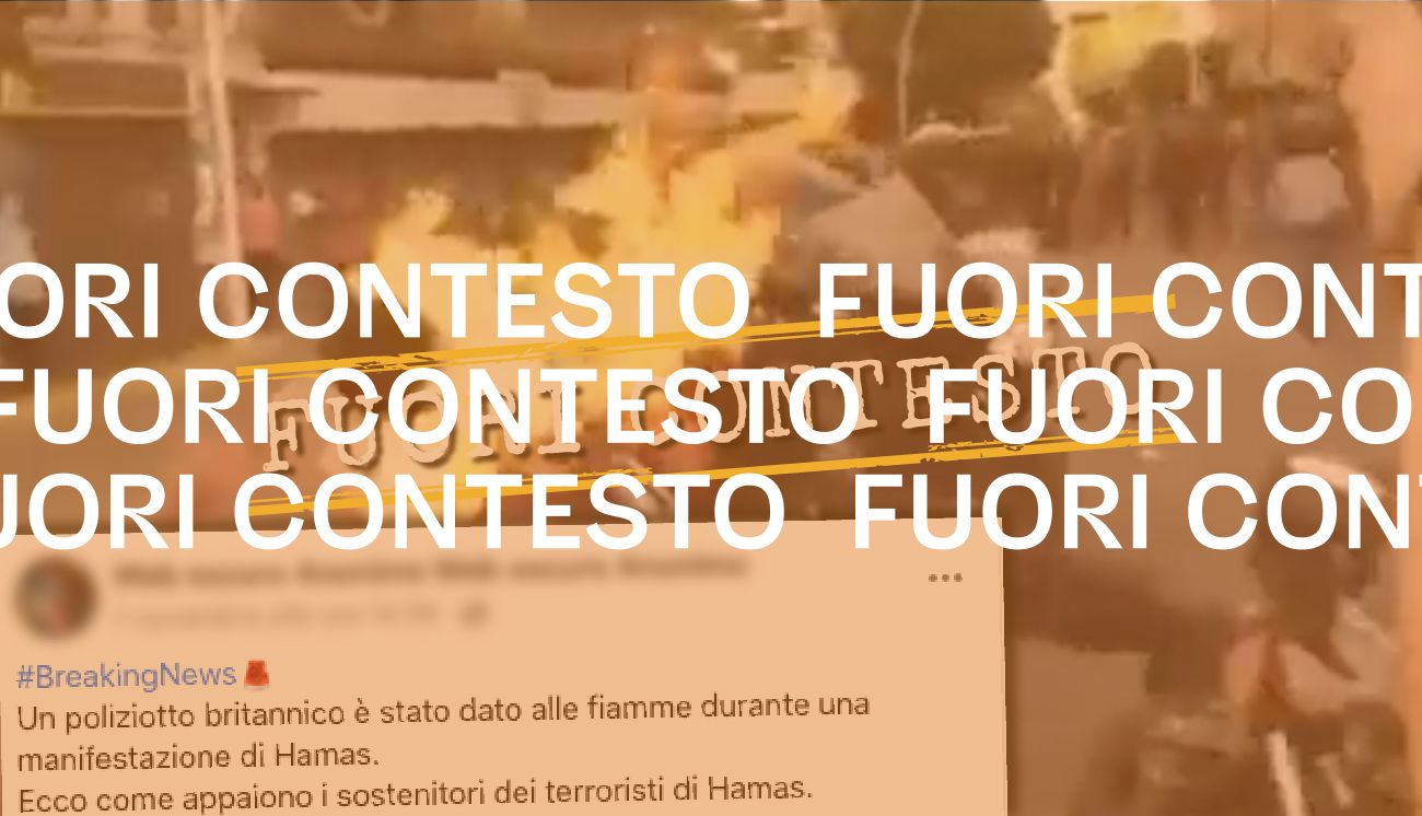 Le immagini sono accompagnate da un commento, scritto dall’autore del post, che recita: «Un poliziotto britannico è stato dato alle fiamme durante una manifestazione di Hamas. Ecco come appaiono i sostenitori dei terroristi di Hamas».