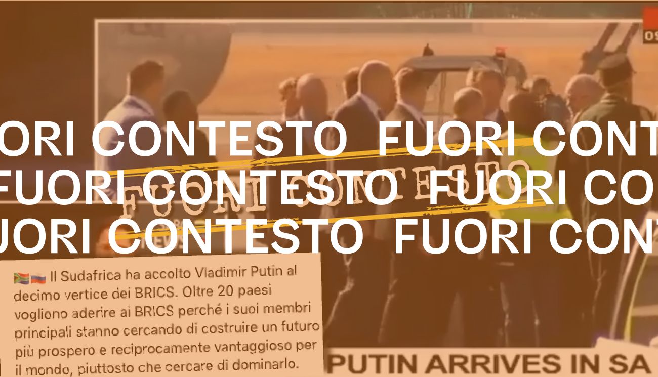 Il 31 marzo 2023 è stato pubblicato su Facebook un video di circa due minuti, in inglese, che appare tratto da un servizio di Sabc News. Il video mostra l’arrivo del presidente russo Vladimir Putin in Sudafrica per una visita ufficiale. Il post è accompagnato da un commento che recita: «Il Sudafrica ha accolto Vladimir Putin al decimo vertice dei BRICS. Oltre 20 paesi vogliono aderire ai BRICS perché i suoi membri principali stanno cercando di costruire un futuro più prospero e reciprocamente vantaggioso per il mondo, piuttosto che cercare di dominarlo.».