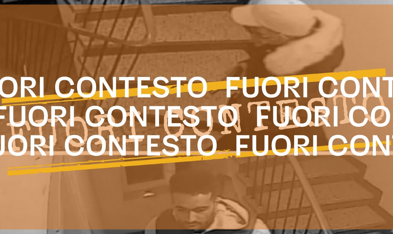 Il 2 aprile su Facebook è stata pubblicata un’immagine composta da due foto in cui si vedono due persone, di cui una armata, sulle rampe delle scale di un edificio e da questo testo: «Stanno girando due persone che con la scusa di dover consegnare delle mascherine donate dal comune si introducono in casa. Sono armati nn aprite e avvertite anche i vostri genitori».