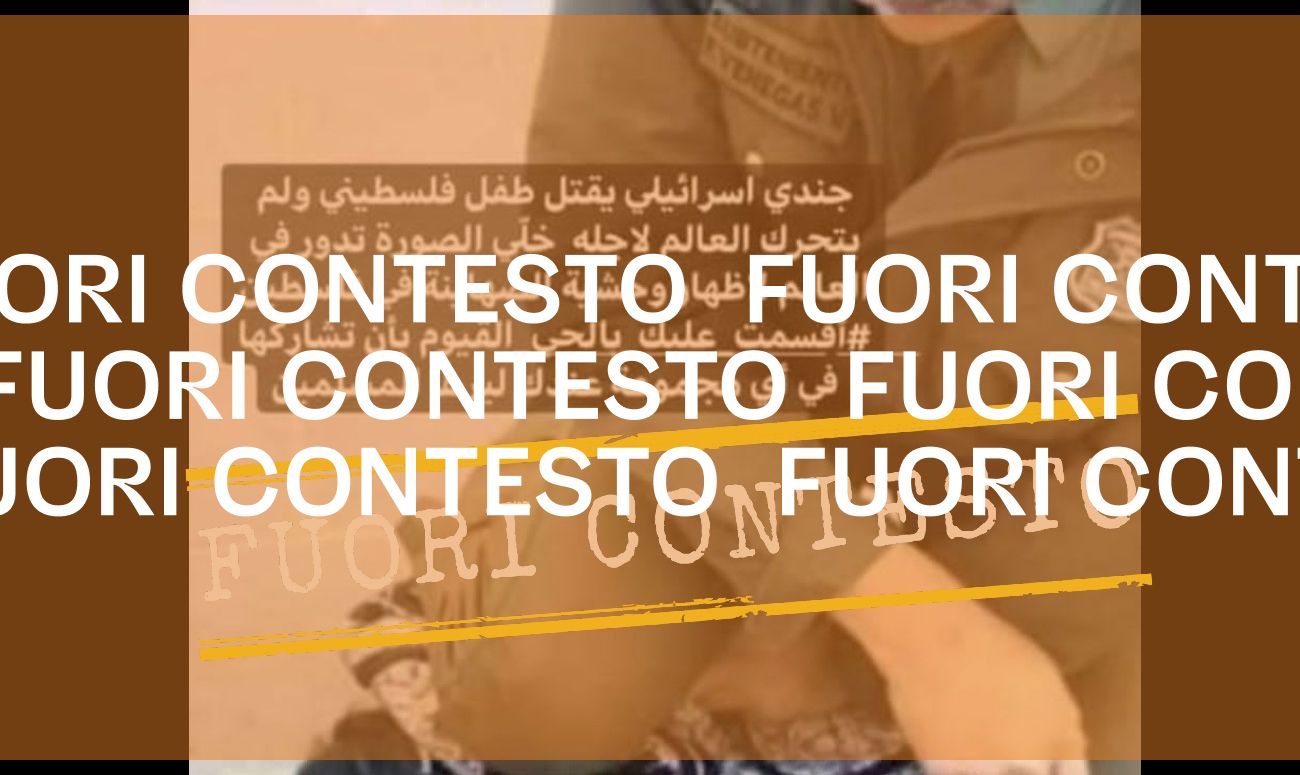 L’11 maggio 2021 su Facebook è stata pubblicata una foto che mostra un uomo in divisa appoggiare il proprio ginocchio sul viso sanguinante di un giovane steso sul pavimento. L’immagine è accompagnata da questo commento, scritto da chi ha pubblicato il testo su Facebook: «Un soldato israeliano uccide un bambino palestinese e nessuno si è mosso per lui (…)». Il riferimento è al conflitto tra Israele e i gruppi armati palestinesi della Striscia di Gaza iniziato dopo un’escalation partita lo scorso 10 maggio che ha riacceso la guerra storica tra i due schieramenti. I conflitti si sono poi interrotti undici giorni dopo con la dichiarazione di un «cessate il fuoco reciproco».