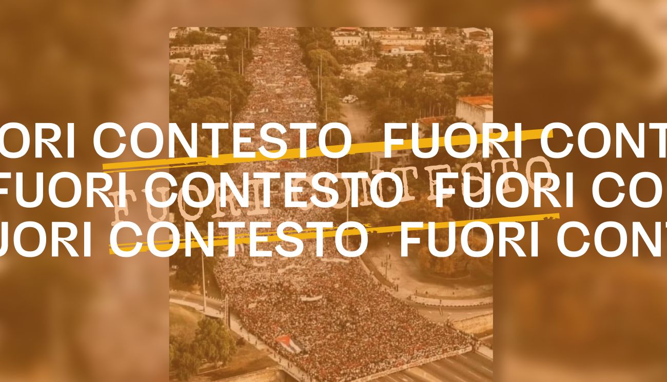 Il 13 luglio 2021 su Facebook è stata pubblicata la foto di un grande corteo di persone sfilare in strada ripreso dall’alto. Lo scatto è accompagnato da questo commento, scritto da chi ha pubblicato il post su Facebook: «Cuba adesso. Manifestazione a difesa del governo ma i tg tutti zitti!». Il riferimento è alle proteste iniziate l’11 luglio 2021 a Cuba contro il governo per la mancanza di generi di prima necessità, medicinali, energia elettrica e per la gestione della pandemia da Covid-19.