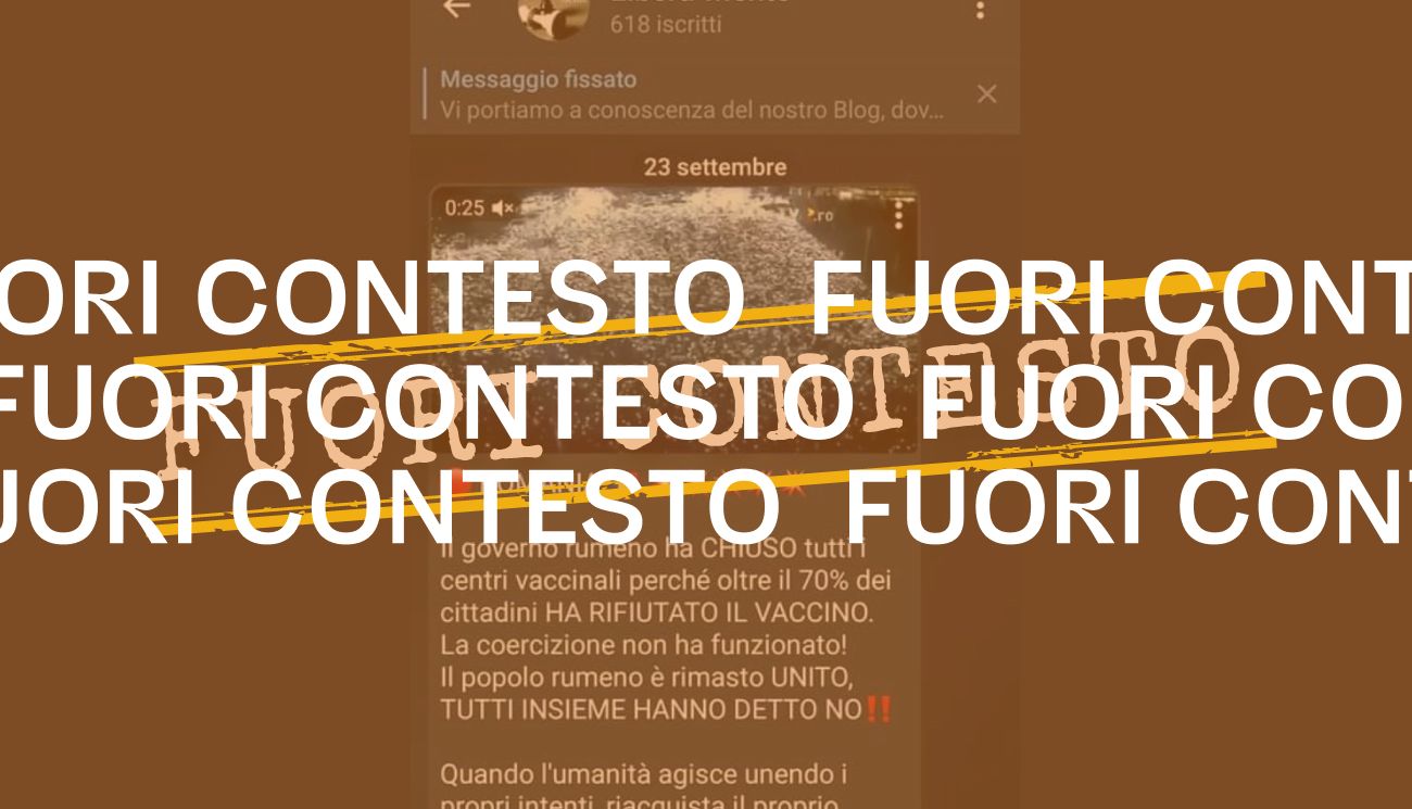 Il 27 settembre 2021 su Facebook è stata pubblicata una foto che mostra una folla ripresa dall’alto di notte. L’immagine è accompagnata da questo testo: «Il governo rumeno ha CHIUSO tutti i centri vaccinali perché oltre il 70% dei cittadini ha rifiutato il vaccino. La coercizione non ha funzionato! Il popolo rumeno è rimasto UNITO, TUTTI INSIEME HANNO DETTO DI NO!!».