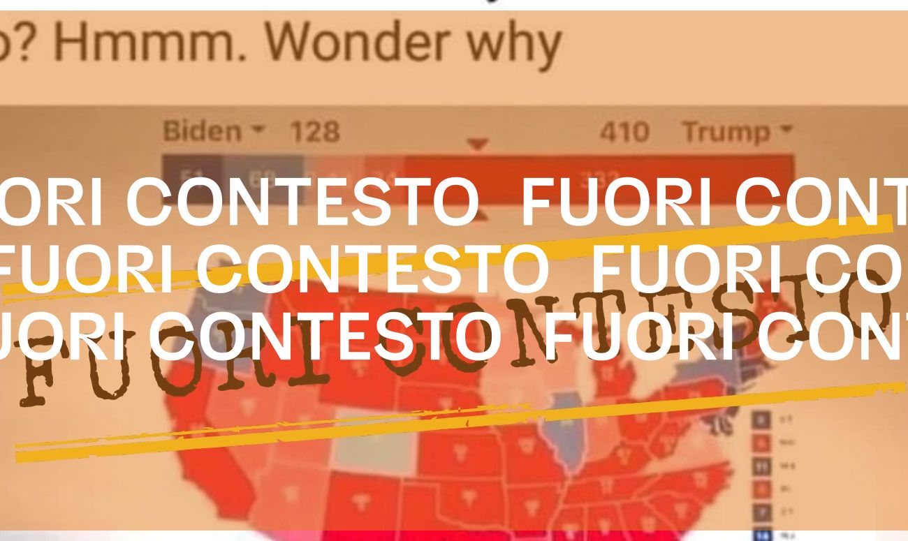 Il 6 dicembre 2020 su Facebook è stata pubblicata un’immagine che mostra una mappa elettorale degli Stati Uniti d’America. Stando al colore con cui sono stati segnati gli Stati, il presidente uscente Donald Trump avrebbe ottenuto 410 grandi elettori, contro i 128 di Joe Biden. Nella foto compare anche un testo in inglese in cui si legge: «This is what the server seized in Frankfurt Germany showed. Trump won in an historic landslide. Has the mainstream media mentioned this? Have you heard about this? No? Hmmm. Wonder why» (tradotto in italiano: «Questo è ciò che ha dimostrato il server sequestrato a Francoforte, in Germania. Trump ha vinto con una vittoria schiacciante. I media mainstream ne hanno parlato? Ne hai sentito parlare? No? Hmmm. Mi chiedo perché»). L’immagine è infine accompagnata da un commento in italiano, scritto da chi ha pubblicato il post su Facebook. La mappa mostrerebbe «il risultato reale direttamente dal server sequestrato a Francoforte, senza le manipolazioni successive».
