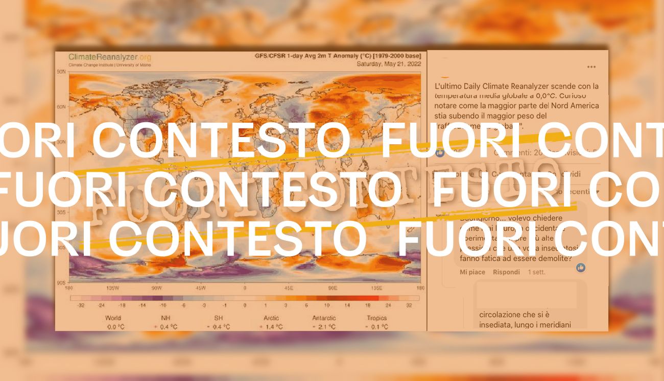 Il 21 maggio 2022 su Facebook è stato pubblicato un post contenente una mappa che confronta la temperatura globale di quel giorno con quelle registrate in media nella stessa data, ma nel periodo che va dal 1979 al 2000. La mappa segnala che la temperatura globale nei periodi considerati è rimasta la stessa.