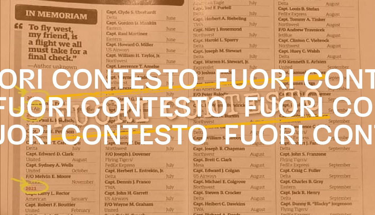 La pagina mostrata nel post è reale ed è stata pubblicata nel numero di ottobre-novembre della rivista Air line pilot magazine, una pubblicazione mensile dell’Air line pilot association (Alpa), il più grande sindacato di piloti di linea che comprende diverse compagnie aeree statunitensi e canadesi. Come spiegato il 9 dicembre 2021 in una nota dalla stessa Alpa sul profilo Twitter ufficiale, le informazioni contenute nella pagina in memoria del piloti deceduti provengono dalle segnalazioni delle famiglie. Per questo motivo, si legge ancora nella nota, non si tratta di «un resoconto completo dei decessi totali per ciascuno degli anni elencati».