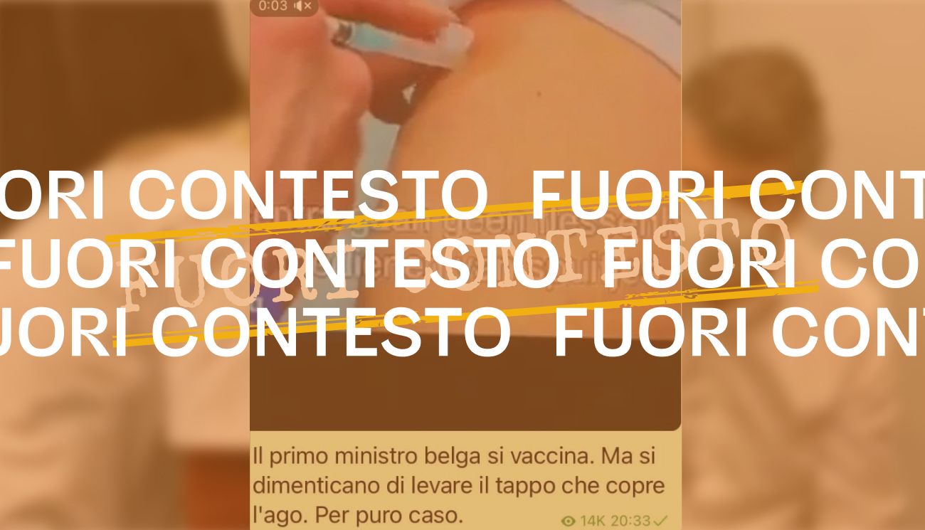 Il 2 settembre 2021 la redazione di Facta ha ricevuto via WhatsApp la richiesta di verificare le informazioni riportate in un messaggio circolato sull’app di messaggistica istantanea, contenente uno screenshot che mostra una siringa poggiata a un braccio e un testo in cui si legge: «Il primo ministro belga si vaccina. Ma si dimenticano di levare il tappo che copre l’ago. Per puro caso».