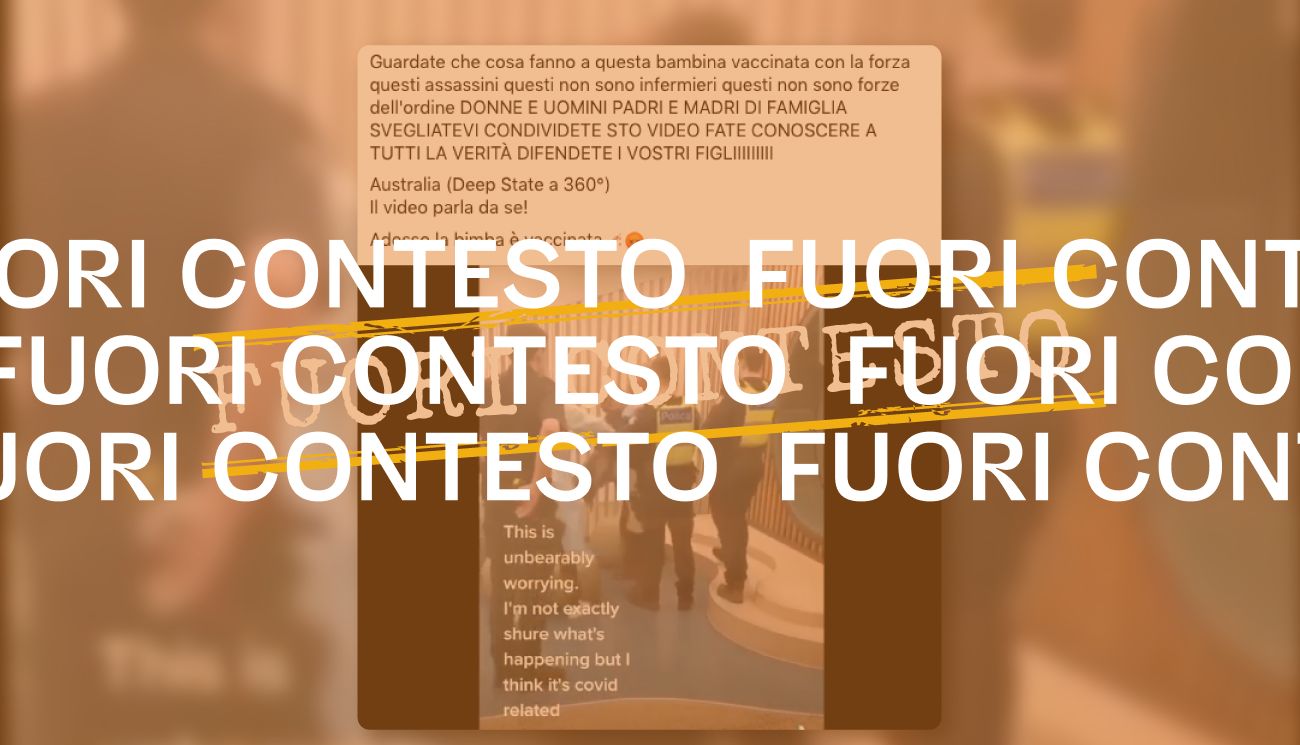 Il 19 agosto 2021 su Facebook è stato pubblicato un video che mostra alcuni uomini delle forze dell’ordine separare con forza una bambina in lacrime da un uomo a cui era abbracciata. Le immagini sono accompagnate da questo commento, scritto da chi ha pubblicato il post su Facebook: «Guardate che cosa fanno a questa bambina vaccinata con la forza questi assassini questi non sono infermieri questi non sono forze dell’ordine DONNE E UOMINI PADRI E MADRI DI FAMIGLIA SVEGLIATEVI CONDIVIDETE STO VIDEO FATE CONOSCERE A TUTTI LA VERITÀ DIFENDETE I VOSTRI FIGLIIIIIIIII Australia (Deep State a 360°) Il video parla da se!».