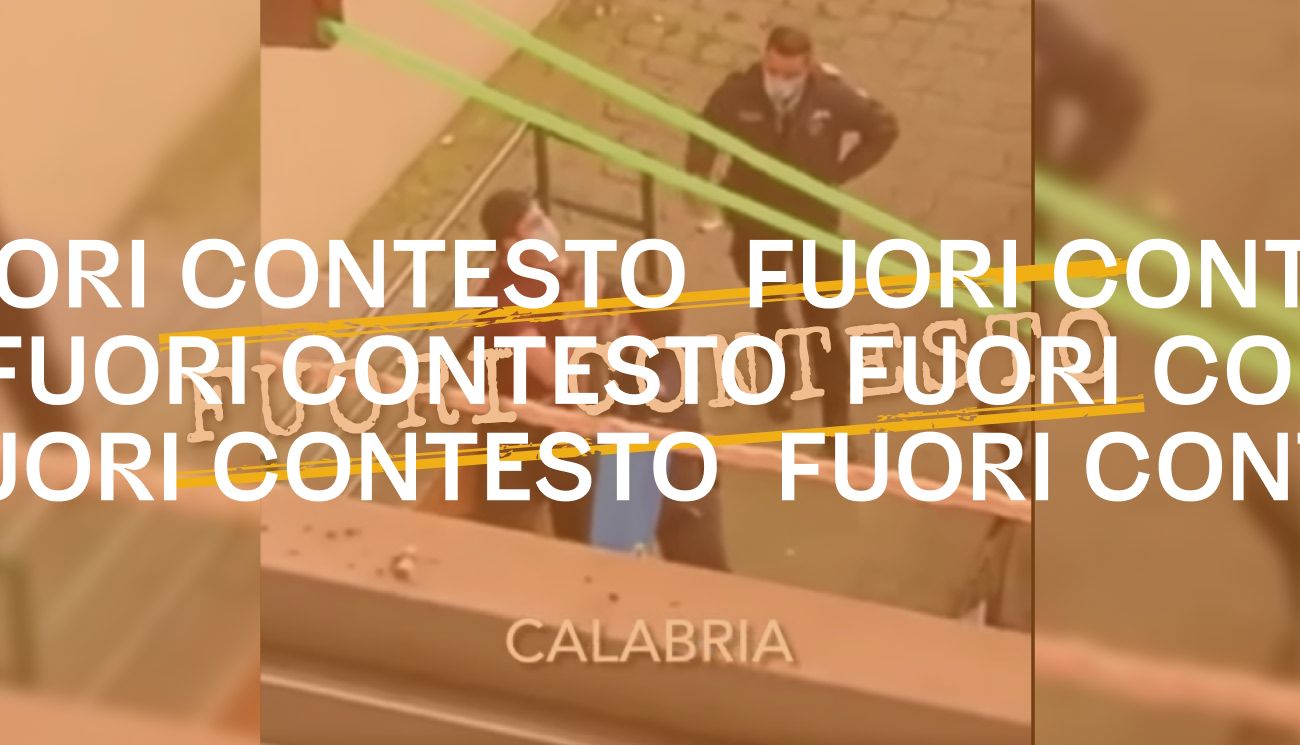 Il 20 febbraio 2022 su Facebook è stato pubblicato un video in cui si vedono degli agenti di polizia bloccare con la forza un ragazzo che indossa una mascherina. Nel video compare in sovraimpressione la scritta «Calabria». Il video è accompagnato da questo testo, scritto da chi ha pubblicato il post su Facebook: «Sempre peggio il ragazzo non ha alzato un dito #calabria non ci si comporta così mi dissocio».