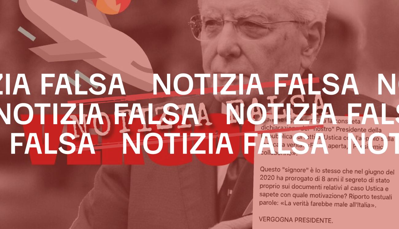 Il 27 giugno 2024 è stato pubblicato un post su Facebook in cui si afferma che «anche oggi» sarebbe «arrivata la consueta dichiarazione del “nostro” Presidente della Repubblica sui fatti di Ustica con l’appello sulla mancata verità: “Ferita aperta, i Paesi amici collaborino”». Il post prosegue sostenendo che «Questo “signore”», ovvero Mattarella, è lo stesso che «nel giugno del 2020 ha prorogato di 8 anni il segreto di stato proprio sui documenti relativi al caso Ustica e sapete con quale motivazione? Riporto testuali parole: “La verità farebbe male all’Italia”». Il post è accompagnato da una foto del presidente della Repubblica, Sergio Mattarella, in cui compare una scritta rossa che recita «Vergogna». Lo stesso contenuto è stato diffuso su X.