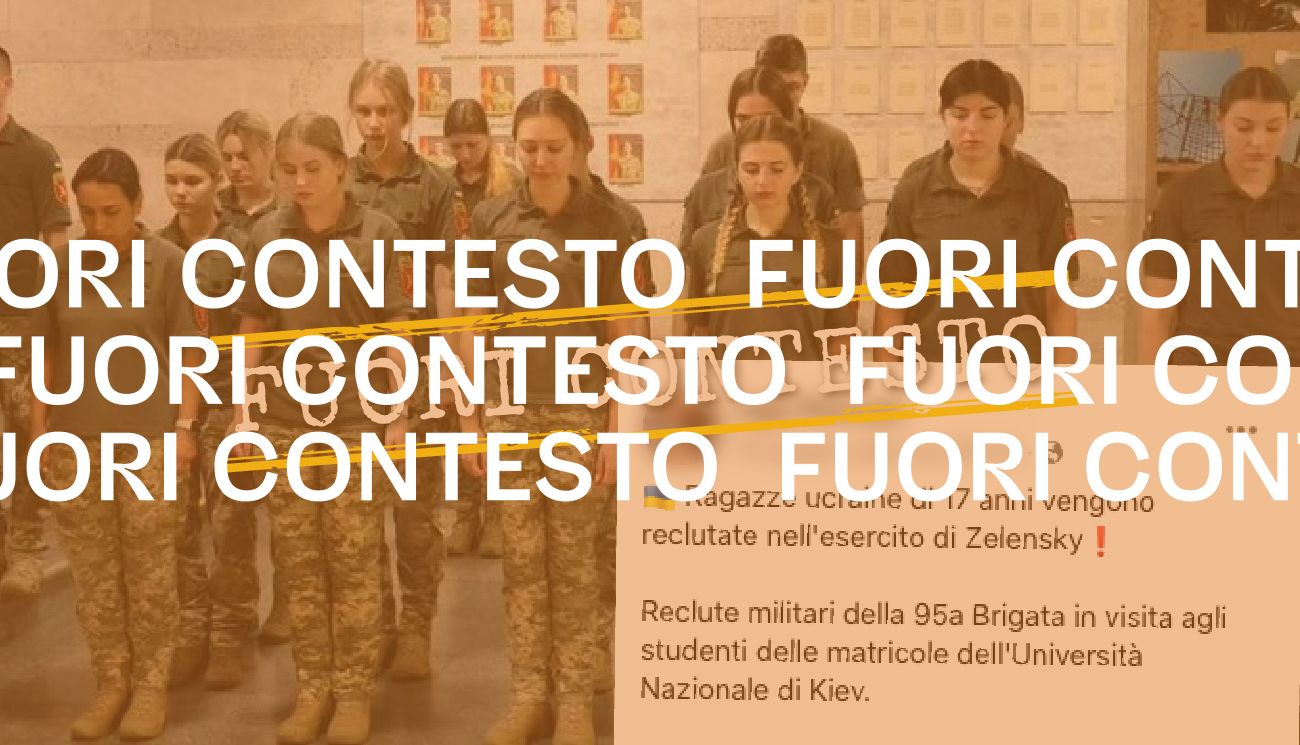 Il 14 giugno 2024 è stata pubblicata su Facebook una foto che mostra alcune ragazze in piedi, in riga e a testa bassa, vestite con abbigliamento militare. Il post è accompagnato dalla seguente didascalia: «Ragazze ucraine di 17 anni vengono reclutate nell’esercito di Zelensky». Stando all’autore del post, le ragazze in questione sarebbero «reclute militari della 95ª Brigata in visita agli studenti delle matricole dell’Università Nazionale di Kiev».