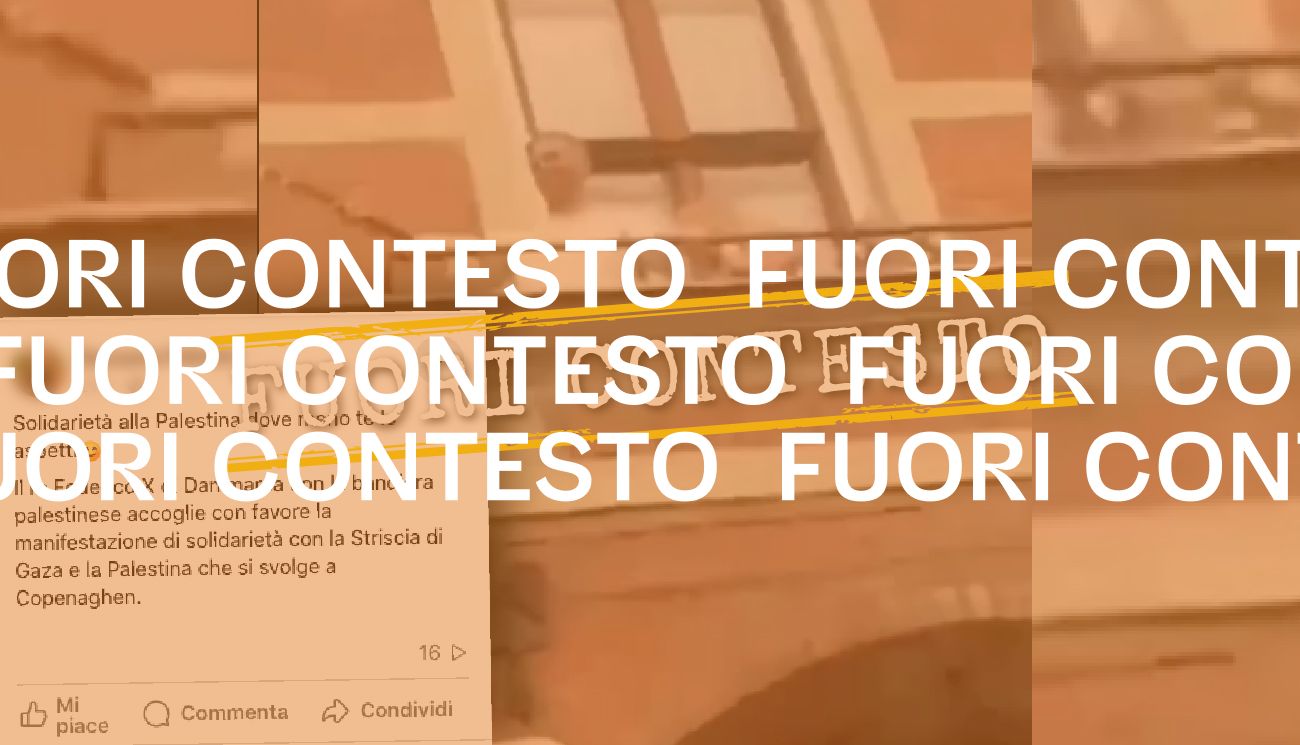 Il filmato è accompagnato da un commento, scritto dall’autore del post, secondo cui la scena si sarebbe verificata in Danimarca e che mostrerebbe il «re Federico X di Danimarca con la bandiera palestinese» che «accoglie con favore la manifestazione di solidarietà con la Striscia di Gaza e la Palestina che si svolge a Copenaghen».