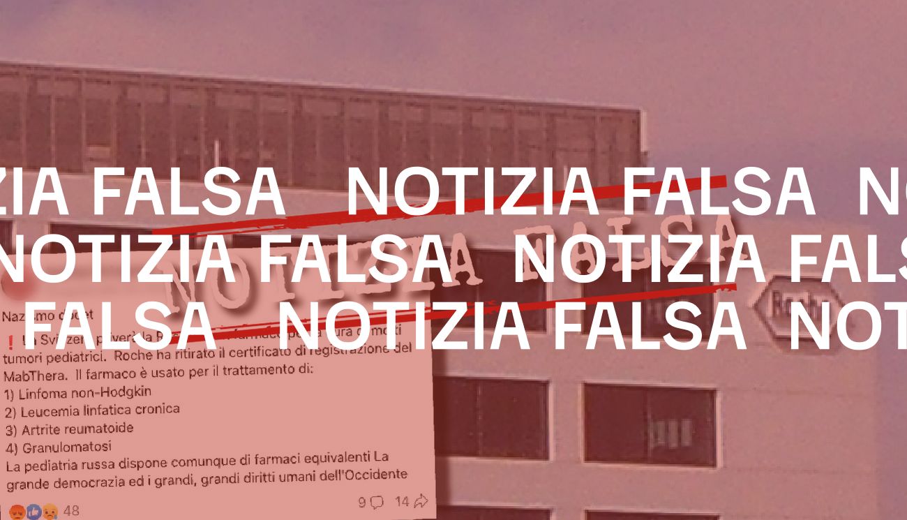 Il 2 settembre 2023 la redazione di Facta.news ha ricevuto una segnalazione via WhatsApp che chiedeva di verificare un post pubblicato su Facebook il 19 agosto. Secondo quanto riportato nel contenuto social, «la Svizzera priverà la Russia di un farmaco per la cura di molti tumori pediatrici». Infatti, si legge ancora «Roche ha ritirato il certificato di registrazione del MabThera», farmaco che sarebbe usato per il trattamento di linfoma non-Hodgkin, leucemia linfatica cronica, artrite reumatoide e granulomatosi.