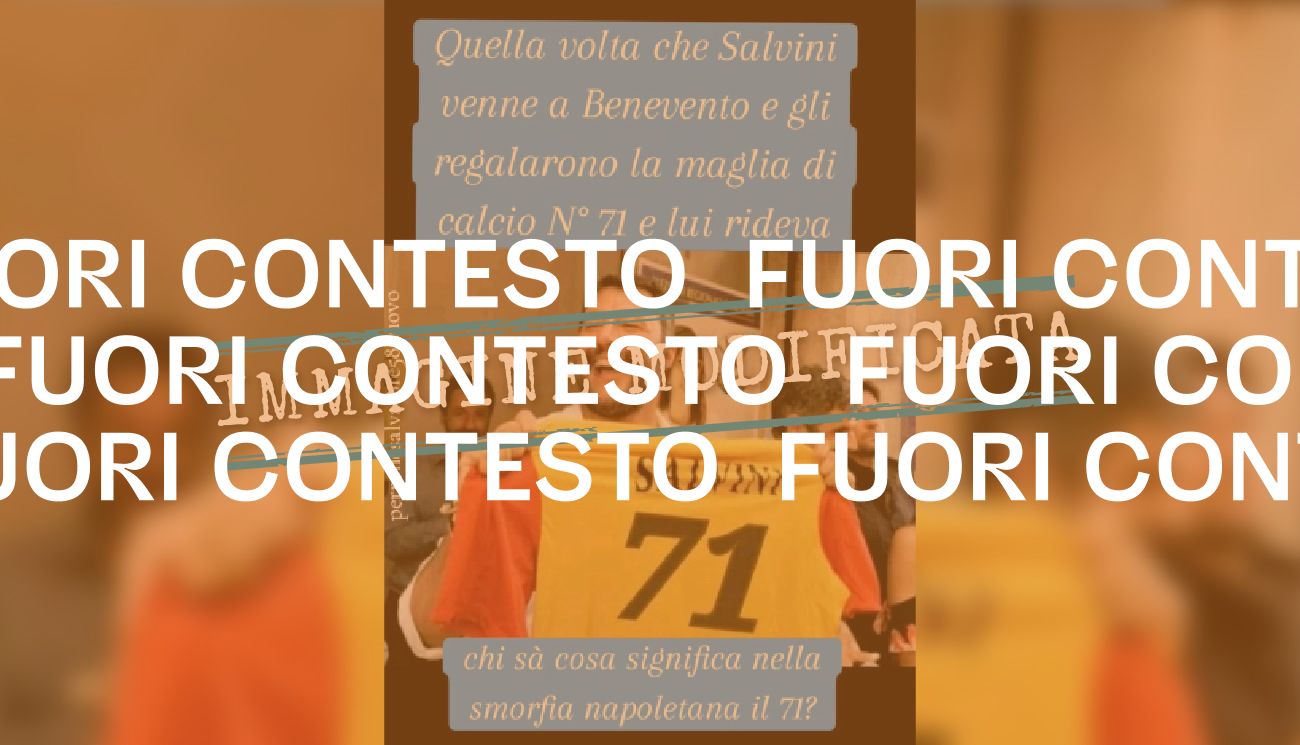 Il 20 marzo 20224 è stato pubblicato su TikTok un video con una foto di Matteo Salvini, ministro delle Infrastrutture e dei Trasporti, con in mano una maglietta di una squadra di calcio con stampato sopra il suo cognome e il numero 71. In sovrimpressione compare un testo che recita: «Quella volta che Salvini venne a Benevento e gli regalarono la maglia di calcio N° 71 e lui rideva. Chi sà cosa significa nella smorfia napoletana il 71?».