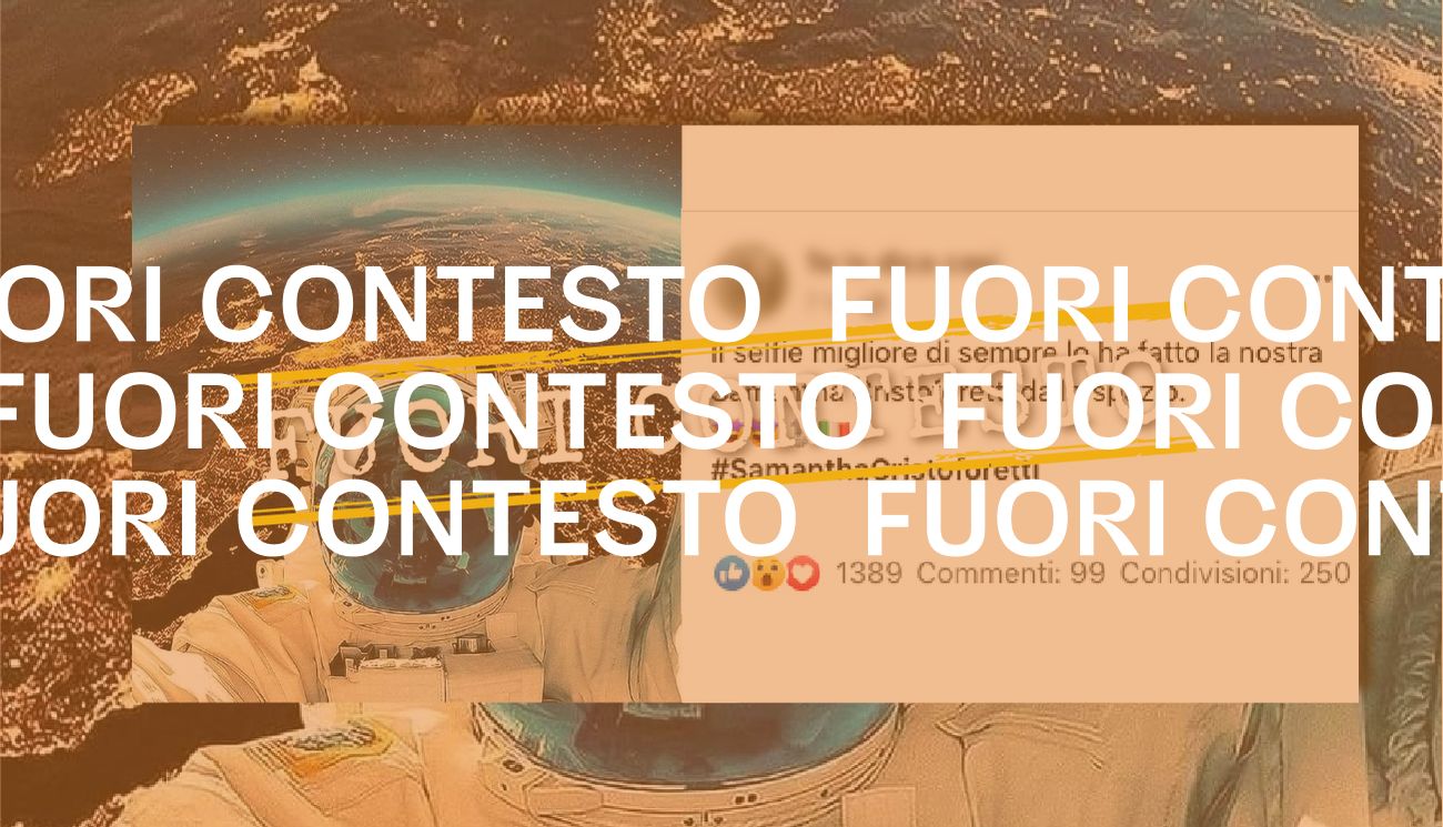 Il 26 luglio 2022 su Facebook è stata pubblicata la foto del primo piano di un astronauta nello spazio e sullo sfondo il pianeta Terra. L’immagine è accompagnata da questo commento, scritto da chi ha pubblicato il post su Facebook: «Il selfie migliore di sempre lo ha fatto la nostra Samantha Cristoforetti dallo spazio».