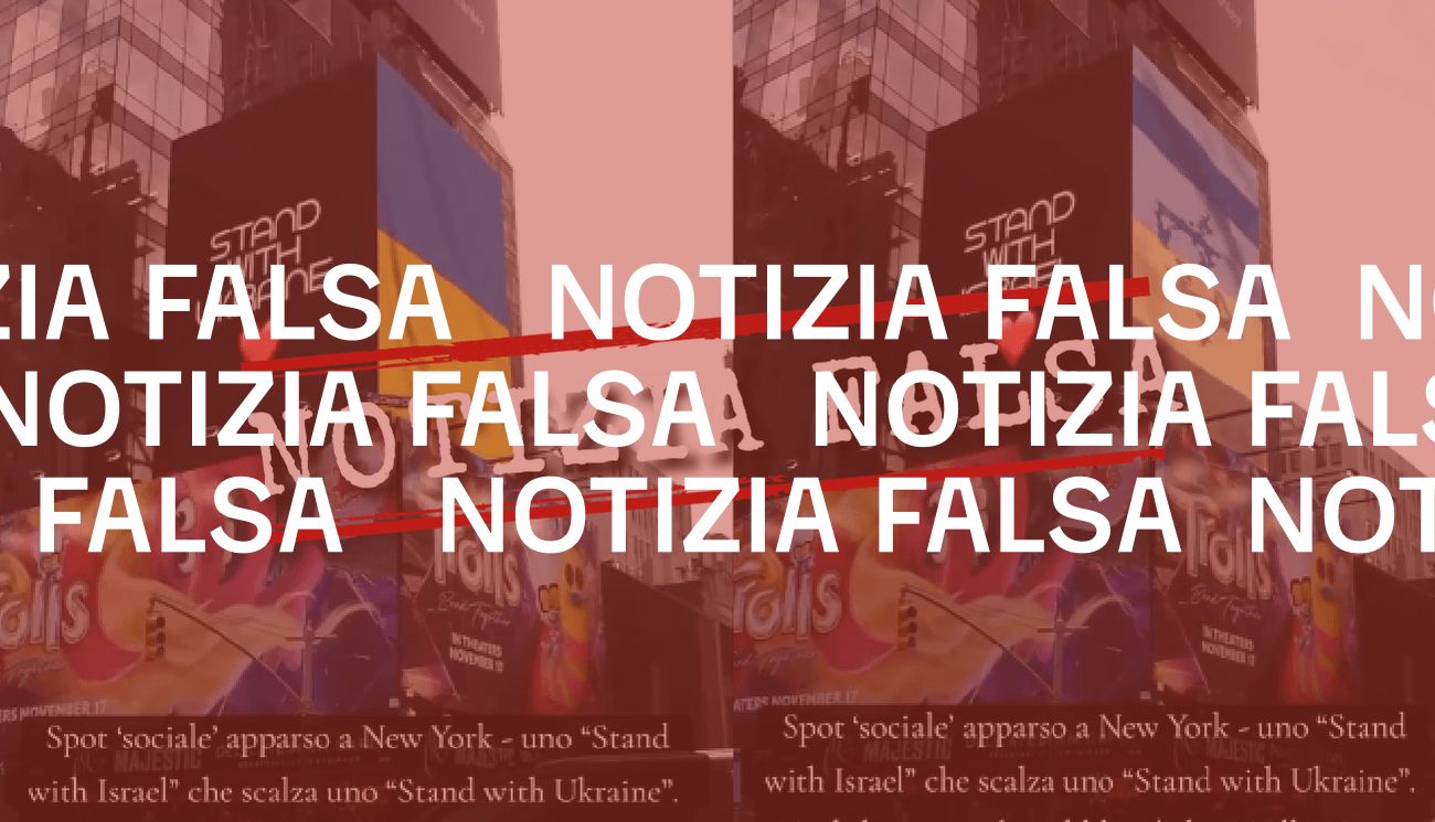 Secondo il contenuto oggetto di analisi, quindi, a New York a novembre sarebbe stato trasmesso un video che mostrerebbe come il supporto pubblico allo Stato di Israele, attaccato da Hamas lo scorso 7 ottobre, avrebbe soppiantato quello all’Ucraina, invasa militarmente dalla Russia a febbraio 2022.